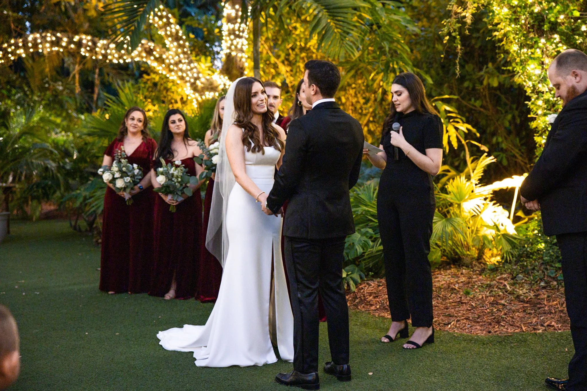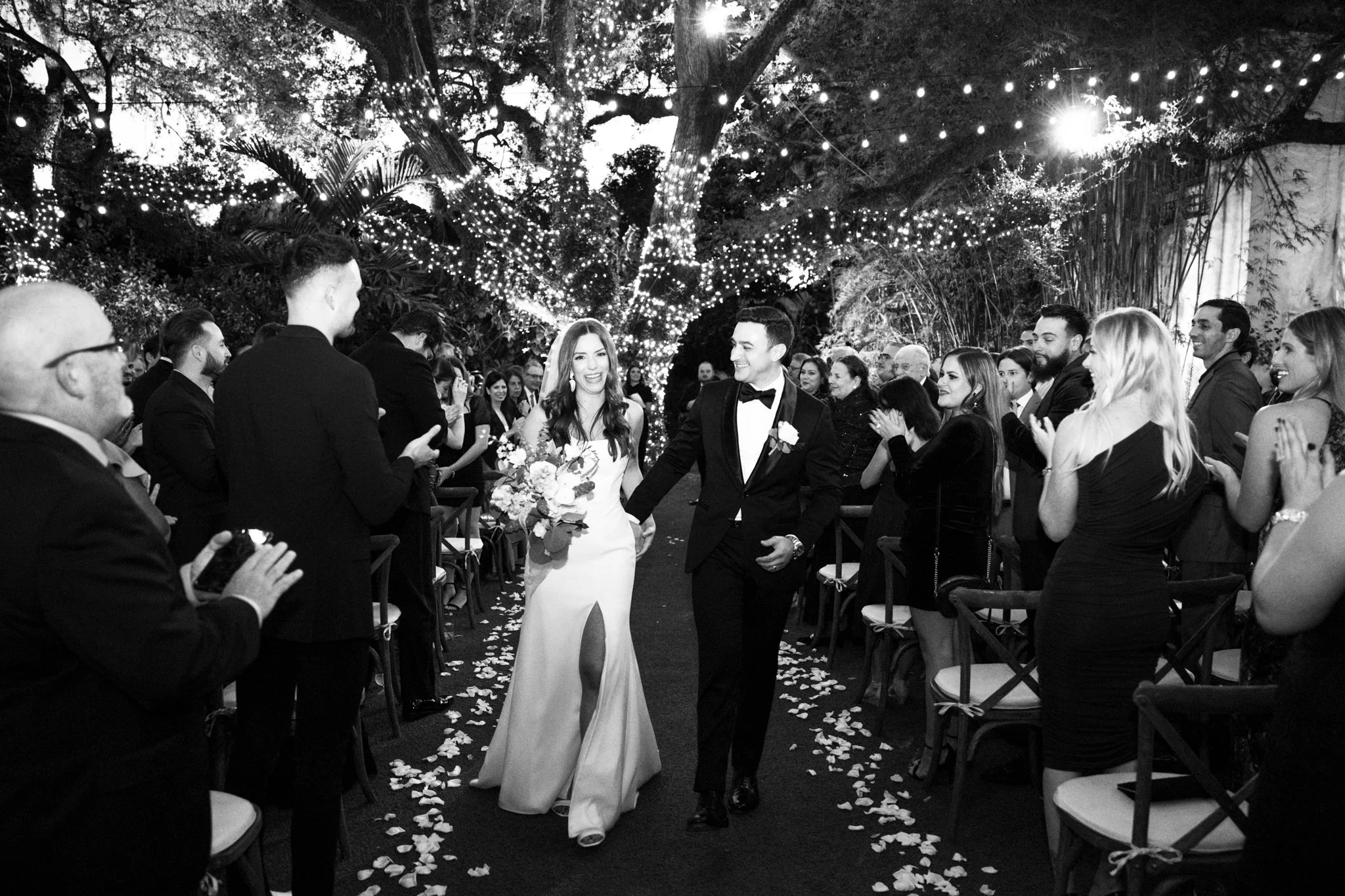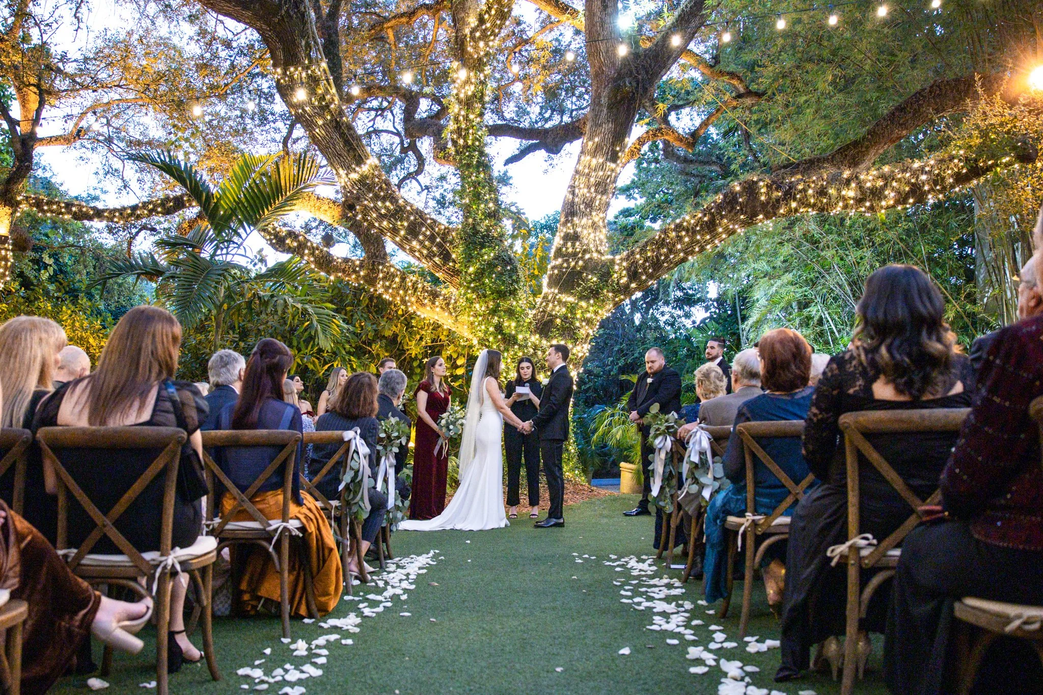 Lauren and Danny both grew up in Miami, FL and met while in college at the University of Central Florida. After dating for 7 years, adopting their first fur baby, and buying a home together they decided to tie the knot after Danny proposed with a ring in her stocking. It was only fitting they would get married a year later in Coconut Grove at the Villa Woodbine a beautiful historic mansion from the 1930s. Their wedding was the perfect night for twinkly lights, warm tropical air, and champagne welcoming the new couple into their happy future!
