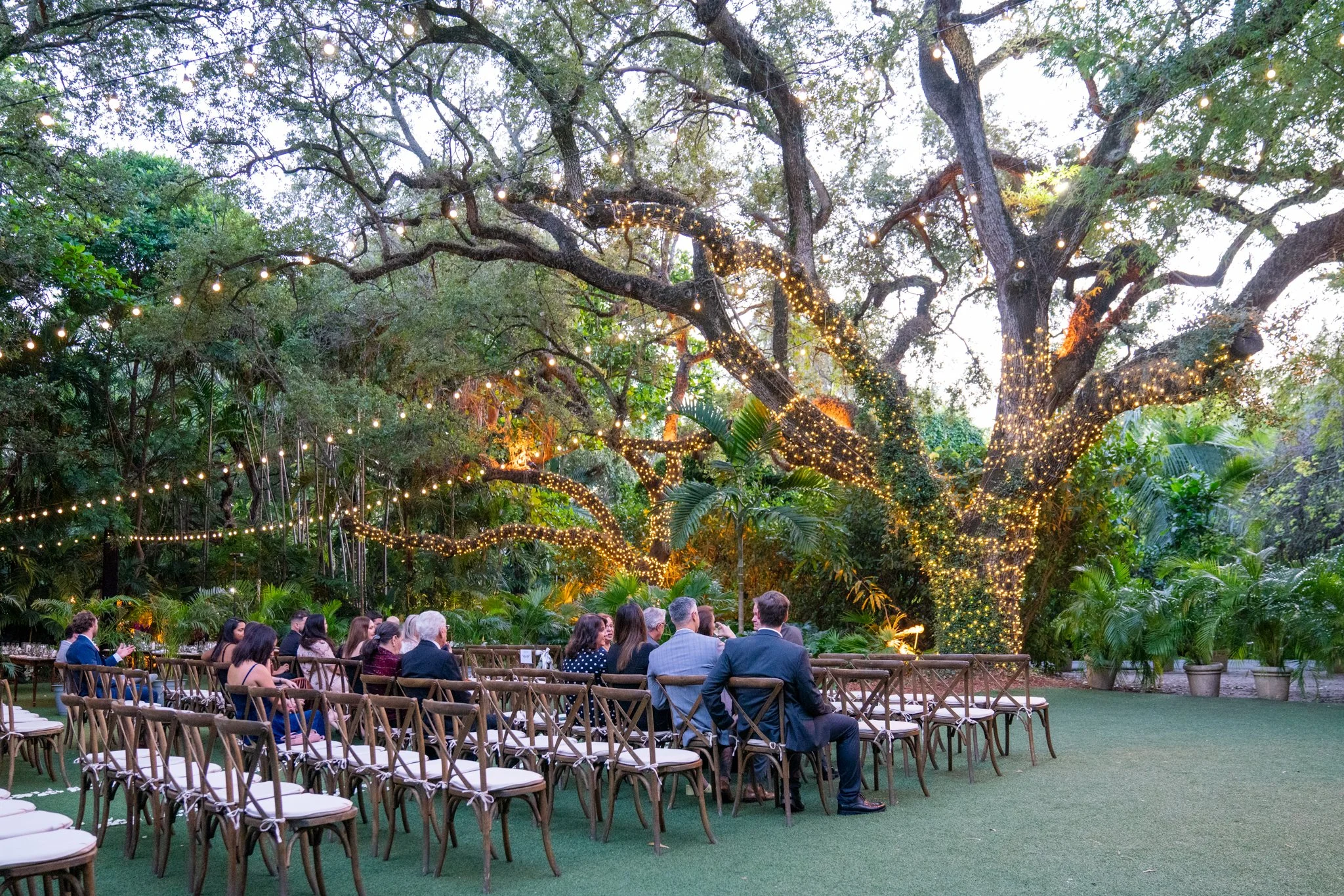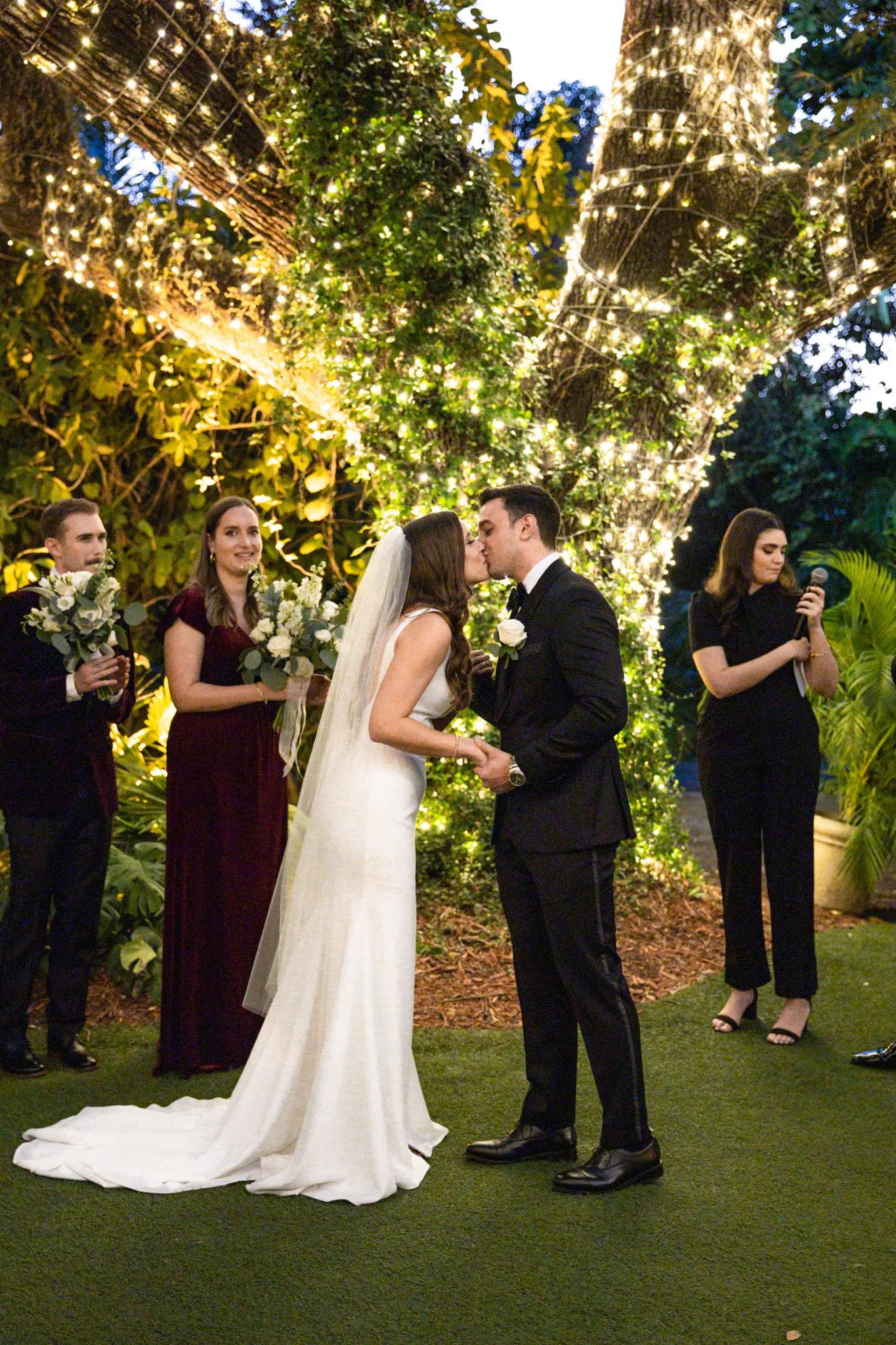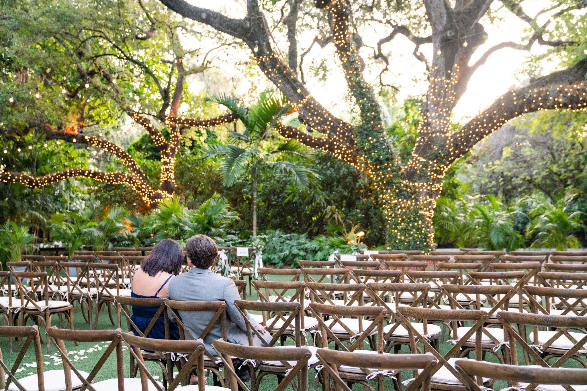 Lauren and Danny both grew up in Miami, FL and met while in college at the University of Central Florida. After dating for 7 years, adopting their first fur baby, and buying a home together they decided to tie the knot after Danny proposed with a ring in her stocking. It was only fitting they would get married a year later in Coconut Grove at the Villa Woodbine a beautiful historic mansion from the 1930s. Their wedding was the perfect night for twinkly lights, warm tropical air, and champagne welcoming the new couple into their happy future!