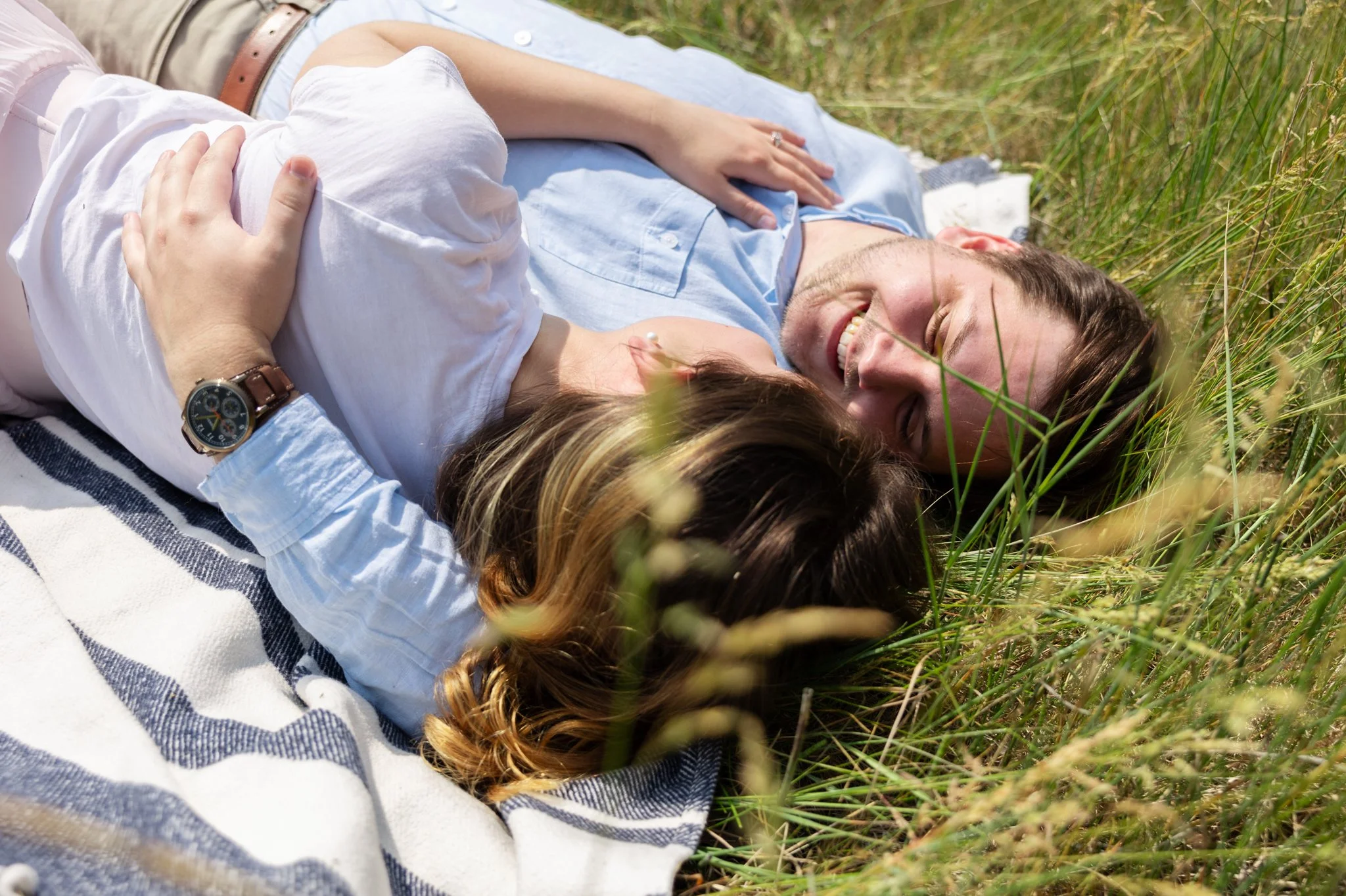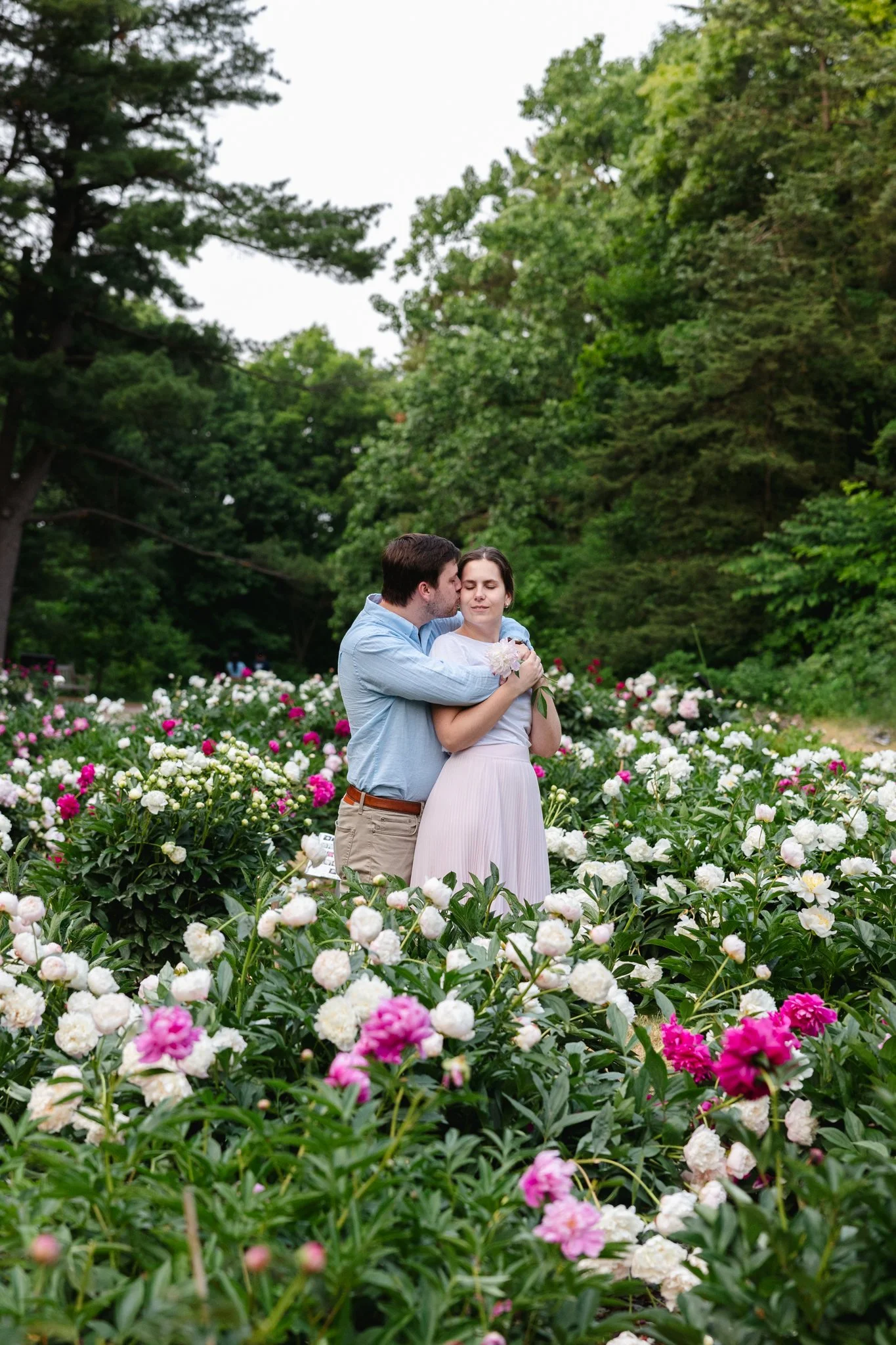 Colby proposed to Molly last year with a beautiful pink diamond, which couldn’t have been more fitting for their engagement shoot in the fully-bloomed peonies gardens in Ann Arbor, Michigan. They were introduced by Molly’s sister who worked with Colby and knew they would instantly hit it off. I first met with the couple during the morning to try to beat the public rush to see the flowers, but after seeing the spring flowers we knew we needed to come back at sunset to capture their magic. Not only did this couple bring the most precious picnic basket and blanket for the fields, but dressed to impress among the gardens.